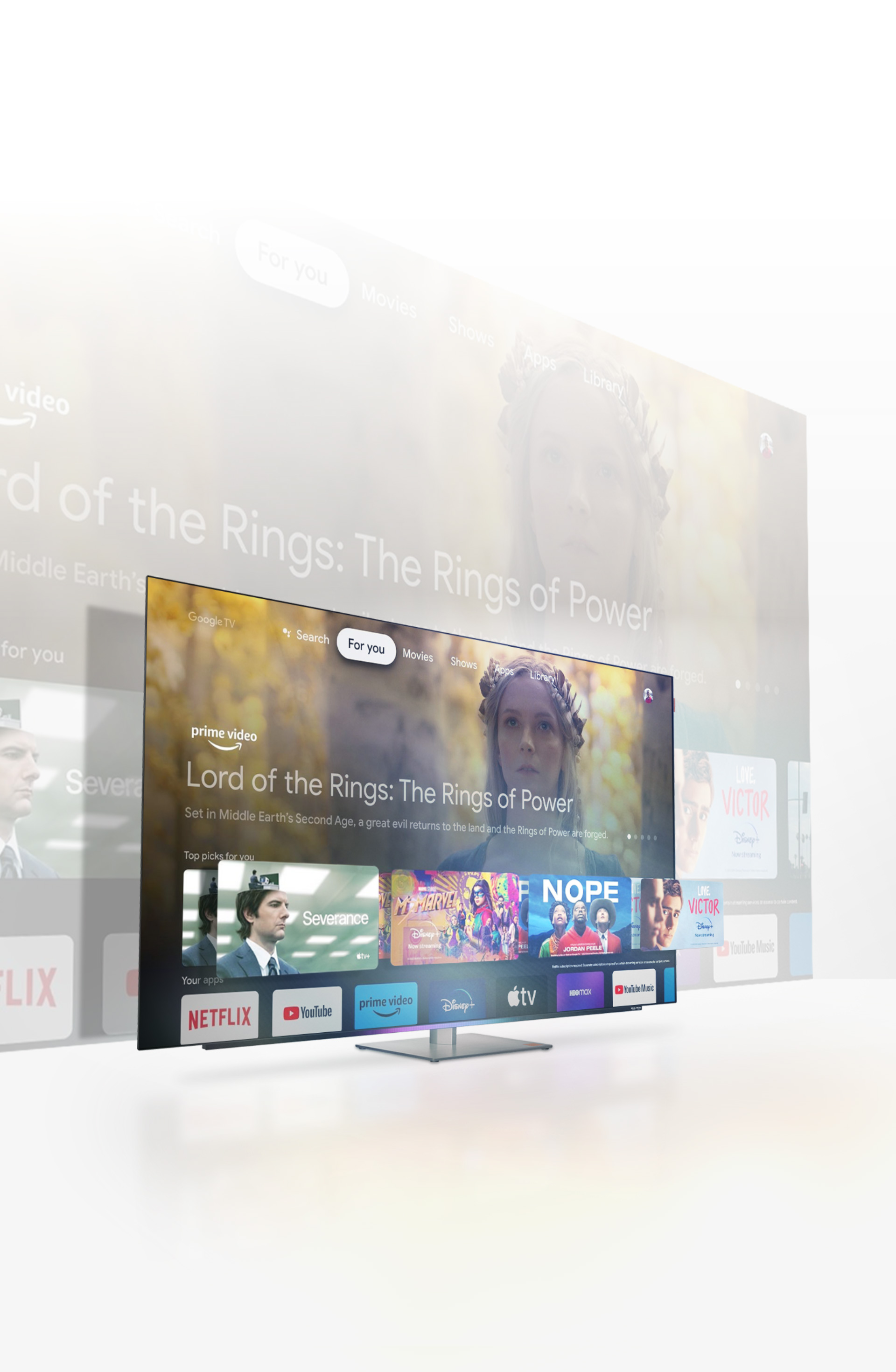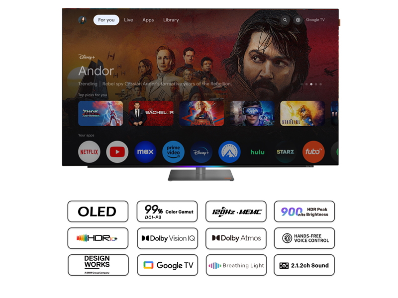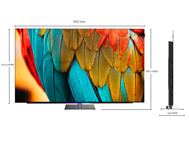 MOD9500 42 “55“ 65 “77”• Televízió-SMART OLED, 106 cm, 4K Ultra HD, 100/120Hz, HDR10+, Dolby Vision IQ és HLG, DVB-T2/S2/C, H.265/HEVC, 4 × HDMI, 2 × USB, CI+, USB felvétel, LAN, Wi-Fi 5, Bluetooth 5.1, Chromecast, Voice, Voos TV, VESA 30X20, 49 W hangszóró (S), Dolby Atmos és Dolby audio -feldolgozás, audio dob, F